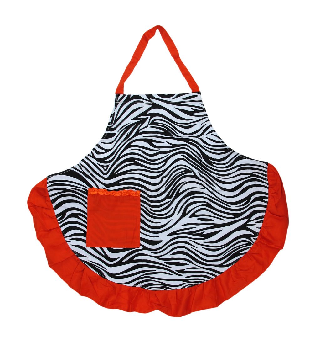 Zebra Print Apron with Orange Ruffle Trim and PocketCHECK PRICE